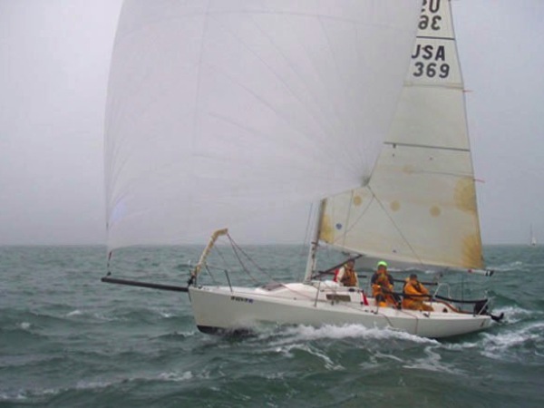 Despite the hard rain and wind predicted, Sunday didn't go down the drain. The race committee promised that all the race boats in the harbor would receive a free rinse-down overnight. A drenching downpour materialized all right, but all the classes started on time. A brief squall ramped up the windspeed for the mid-fleet starts, and a few late reefs were tucked in just before the starting guns.